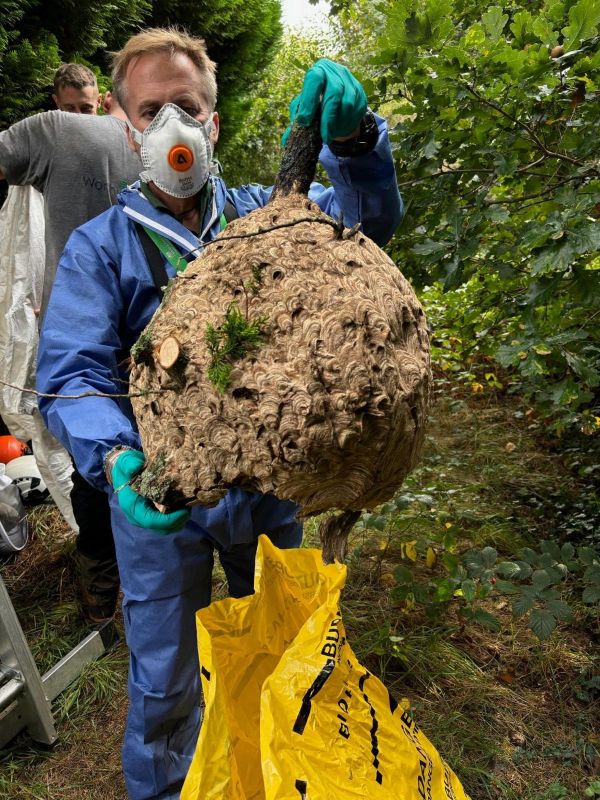 Asian hornets are slightly smaller than our European hornets, however the Asian hornet carries more venom and will sting repeatedly if intimidated.